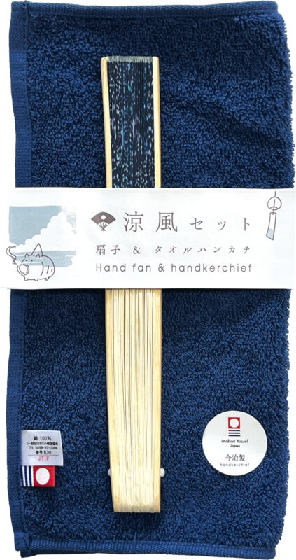 | 材質 | : | 扇子:竹/ポリエステル 今治タオルハンカチ:綿100% |